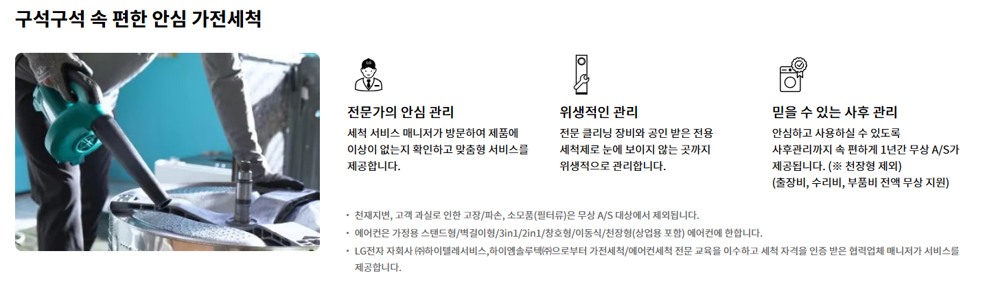 추가적으로 필요한 내부 고압 세척, 살균 청소는 유상 서비스로 전환 가능하며, 별도 안내 후 선택할 수 있어요.